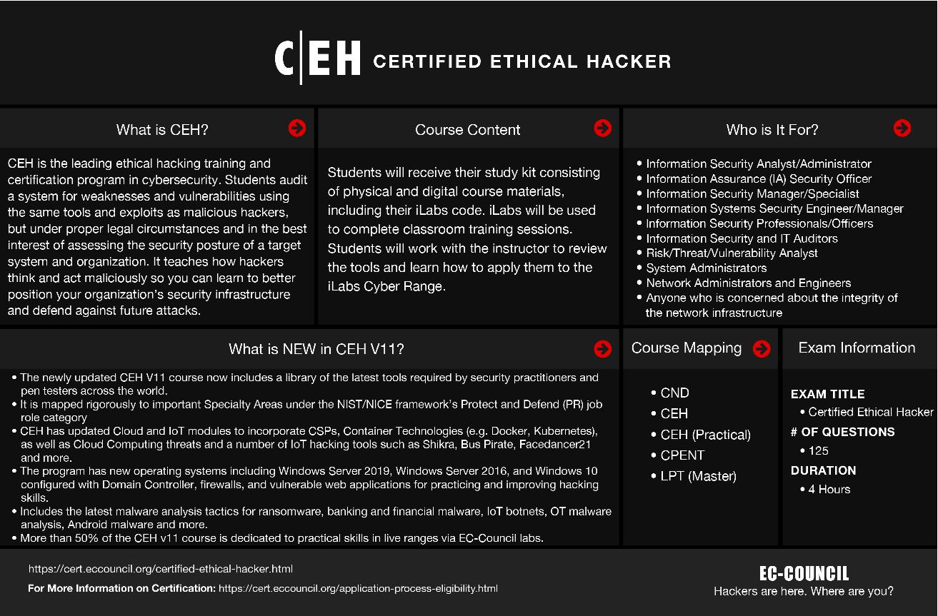 EC-Council CEH course is designed for both professionals with over 8 years of IT industry experience and fresh graduates willing to start a career in cybersecurity.